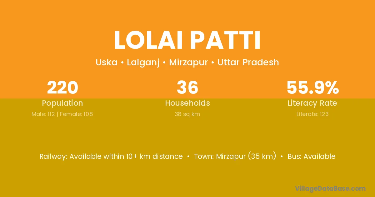Mirzapur (35 km) is the nearest town to Lolai Patti village for major economic activities and is located approximately 35 km away.
