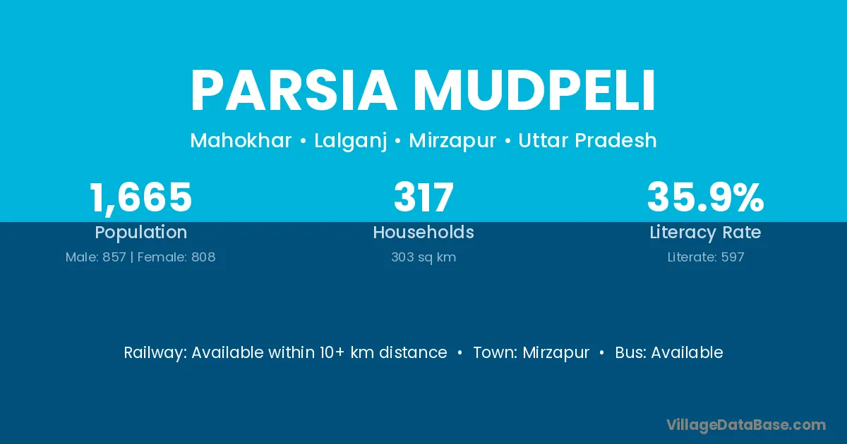 Mirzapur is the nearest town to Parsia Mudpeli village for major economic activities