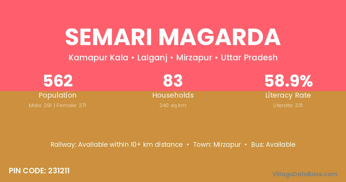 Mirzapur is the nearest town to Semari Magarda village for major economic activities