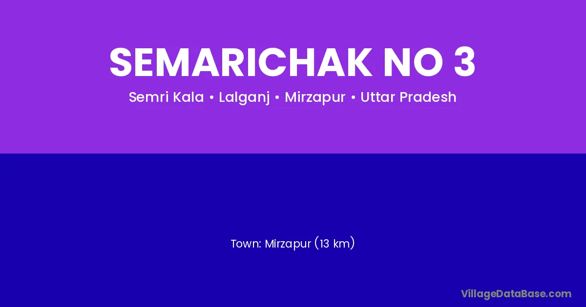 Mirzapur (13 km) is the nearest town to Semarichak No 3 village for major economic activities and is located approximately 13 km away.