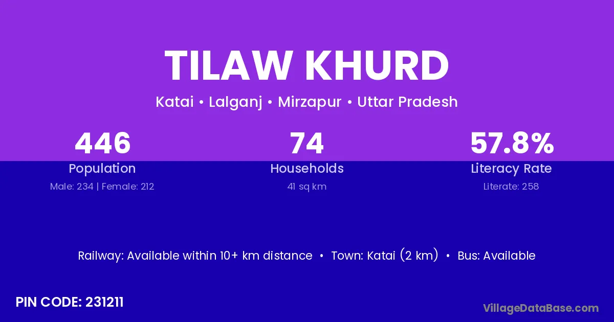 Katai (2 km) is the nearest town to Tilaw Khurd village for major economic activities and is located approximately 2 km away.