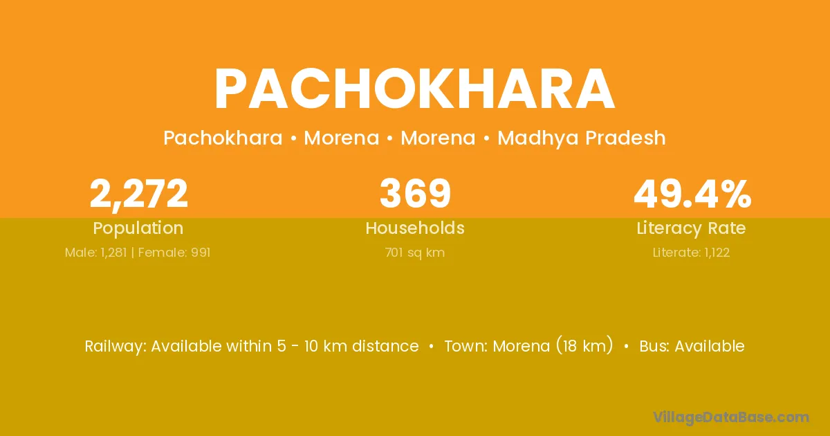 The literacy rate of Pachokhara village is 62.14%. Male literacy stands at 71.22% and female literacy at 51.72%.
