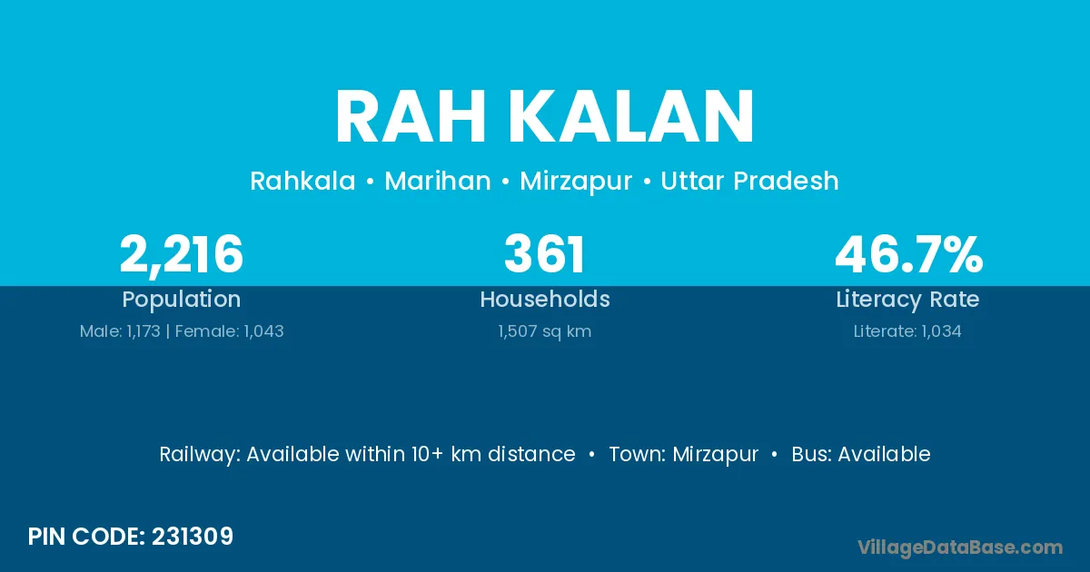 Mirzapur is the nearest town to Rah Kalan village for major economic activities