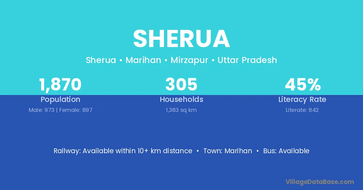 Sherua village has a total population of 1,870 people, of which 973 are males and 897 are females.