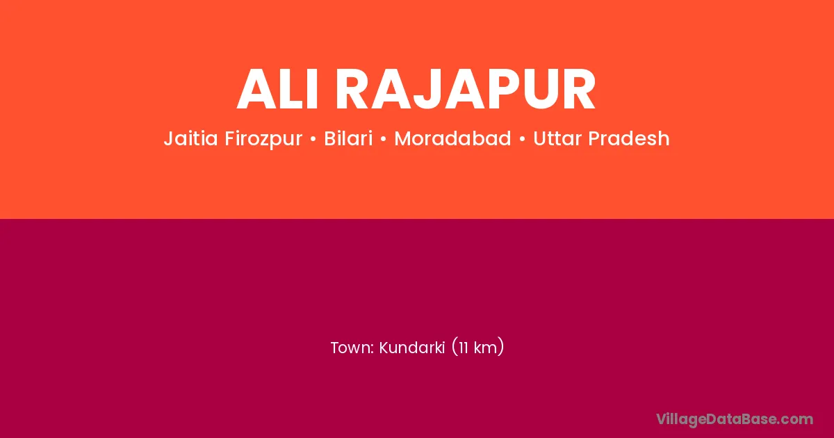 Kundarki (11 km) is the nearest town to Ali Rajapur village for major economic activities and is located approximately 11 km away.