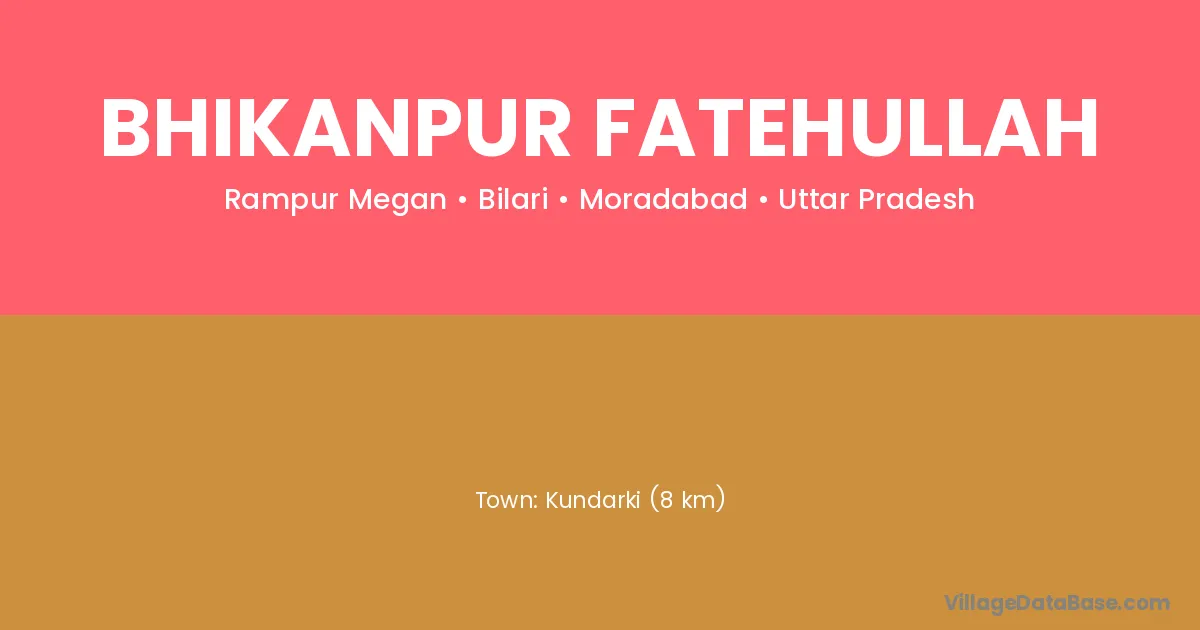 Kundarki (8 km) is the nearest town to Bhikanpur Fatehullah village for major economic activities and is located approximately 8 km away.
