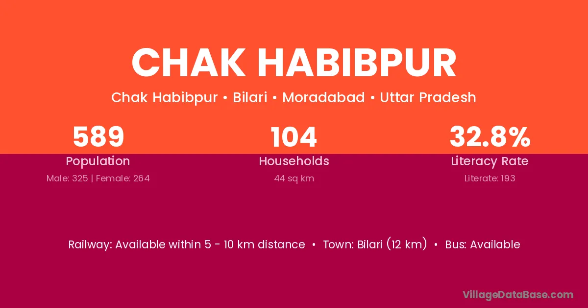 Bilari (12 km) is the nearest town to Chak Habibpur village for major economic activities and is located approximately 12 km away.