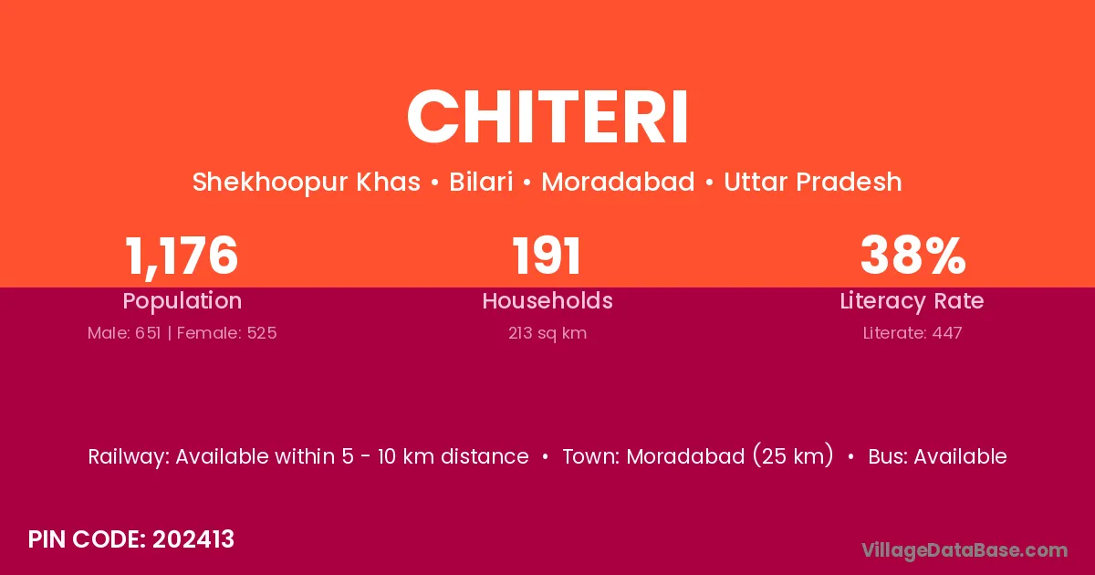 Moradabad (25 km) is the nearest town to Chiteri village for major economic activities and is located approximately 25 km away.