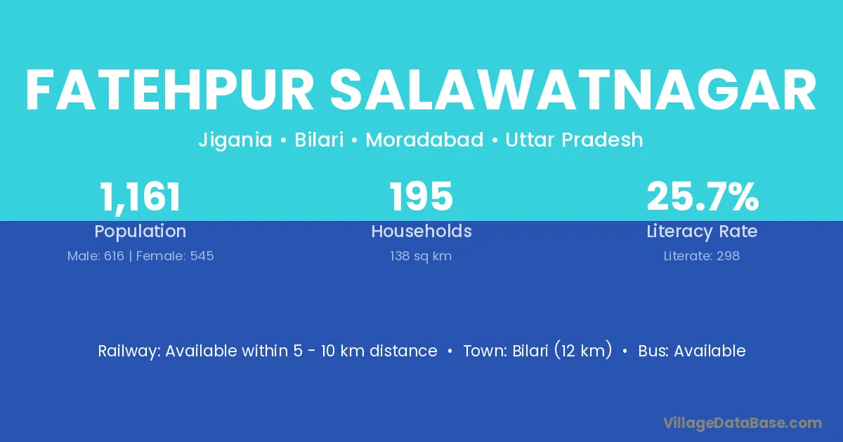 Fatehpur Salawatnagar village has a total population of 1,161 people, of which 616 are males and 545 are females.