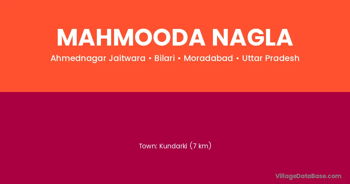 Kundarki (7 km) is the nearest town to Mahmooda Nagla village for major economic activities and is located approximately 7 km away.