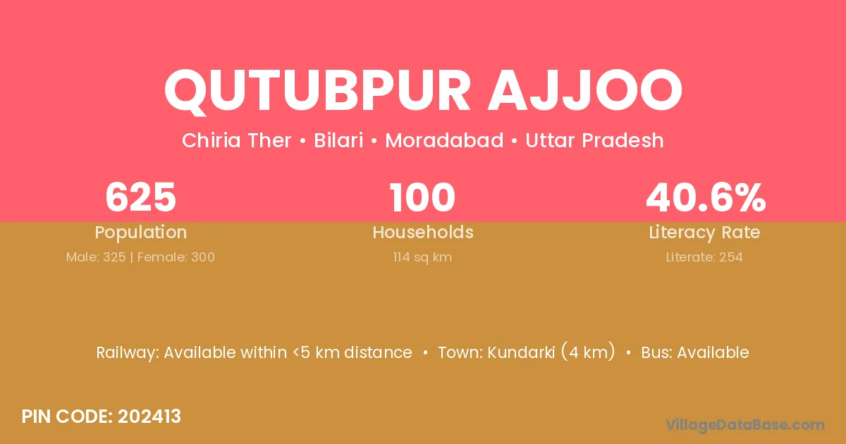 Qutubpur Ajjoo village has a total population of 625 people, of which 325 are males and 300 are females.