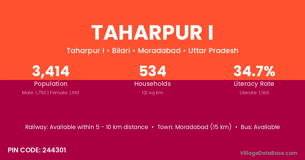 Moradabad (15 km) is the nearest town to Taharpur I village for major economic activities and is located approximately 15 km away.