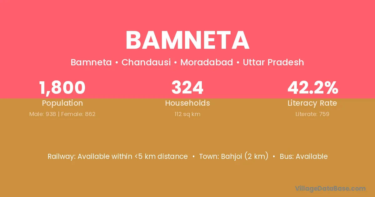 Bahjoi (2 km) is the nearest town to Bamneta village for major economic activities and is located approximately 2 km away.