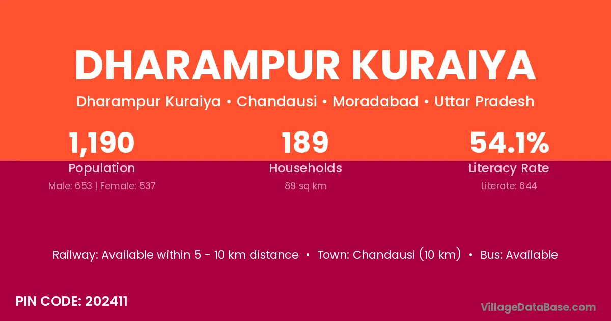 Dharampur Kuraiya village has a total population of 1,190 people, of which 653 are males and 537 are females.