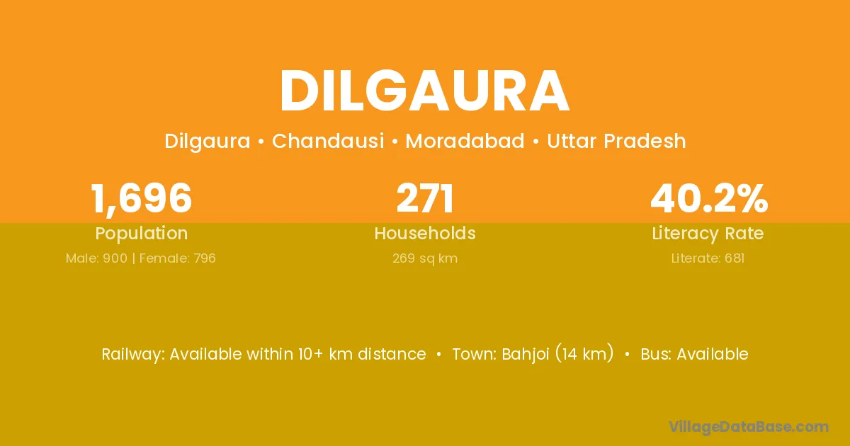 Bahjoi (14 km) is the nearest town to Dilgaura village for major economic activities and is located approximately 14 km away.