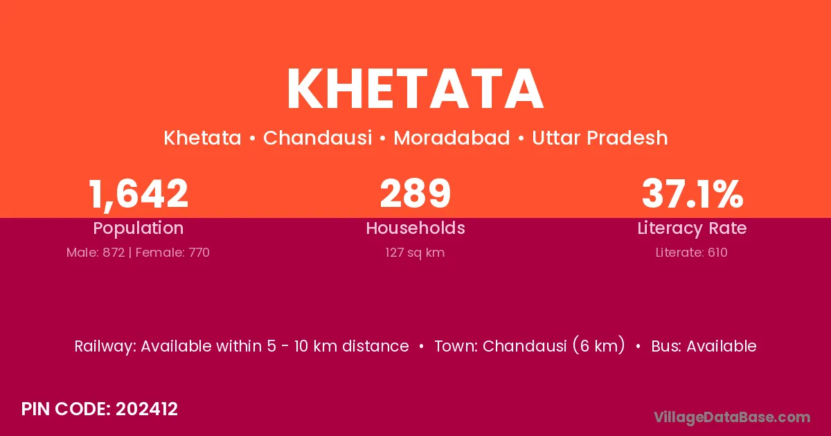 Chandausi (6 km) is the nearest town to Khetata village for major economic activities and is located approximately 6 km away.