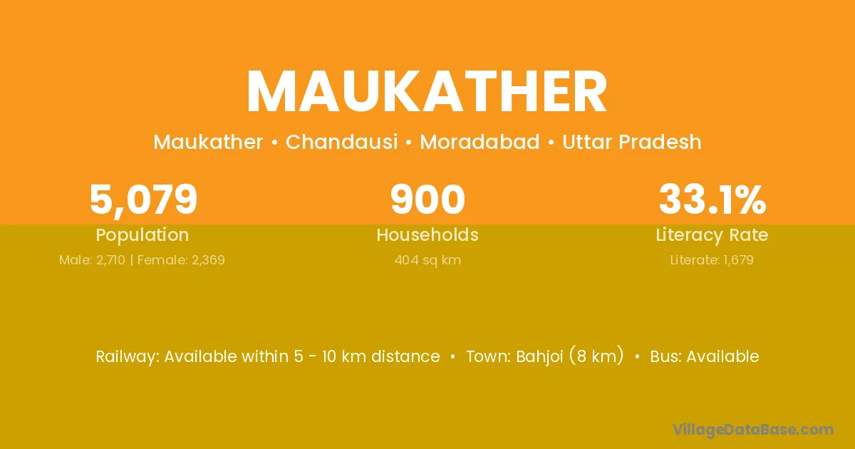 Bahjoi (8 km) is the nearest town to Maukather village for major economic activities and is located approximately 8 km away.