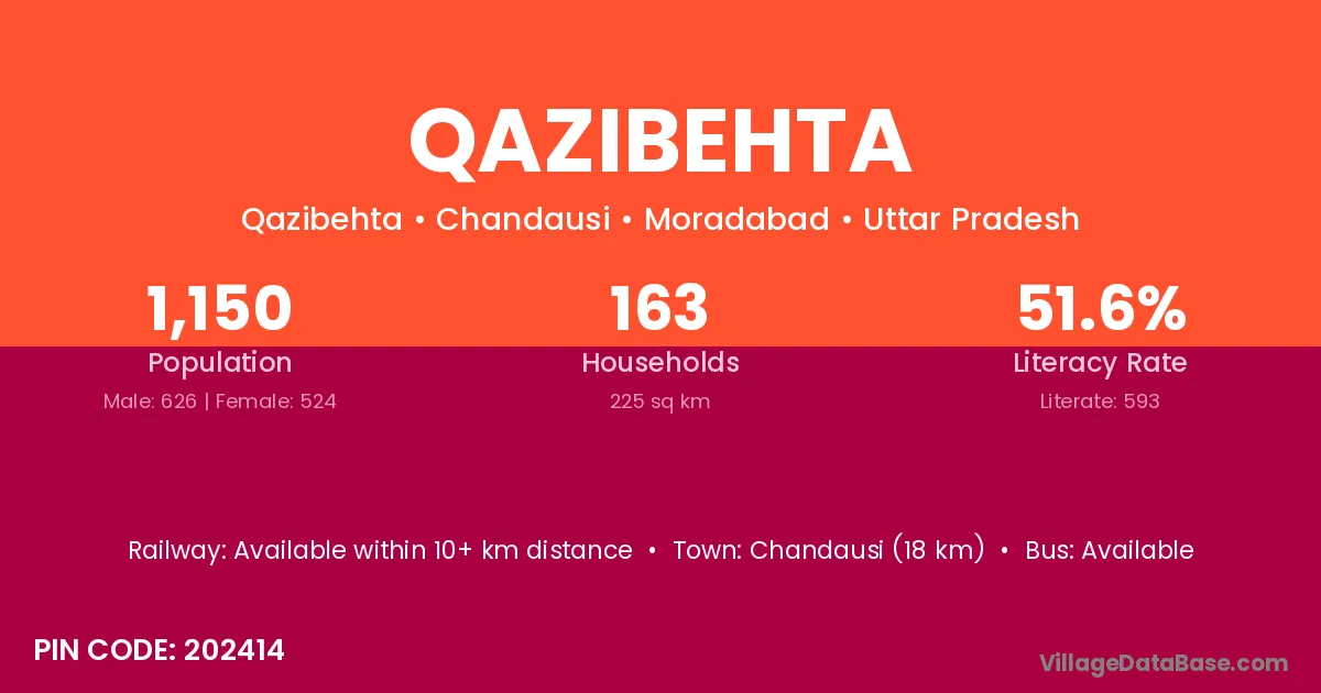 Chandausi (18 km) is the nearest town to Qazibehta village for major economic activities and is located approximately 18 km away.