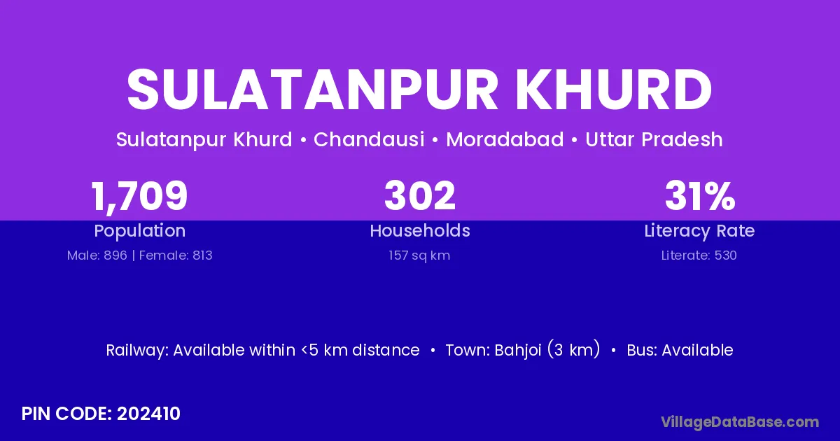Bahjoi (3 km) is the nearest town to Sulatanpur Khurd village for major economic activities and is located approximately 3 km away.