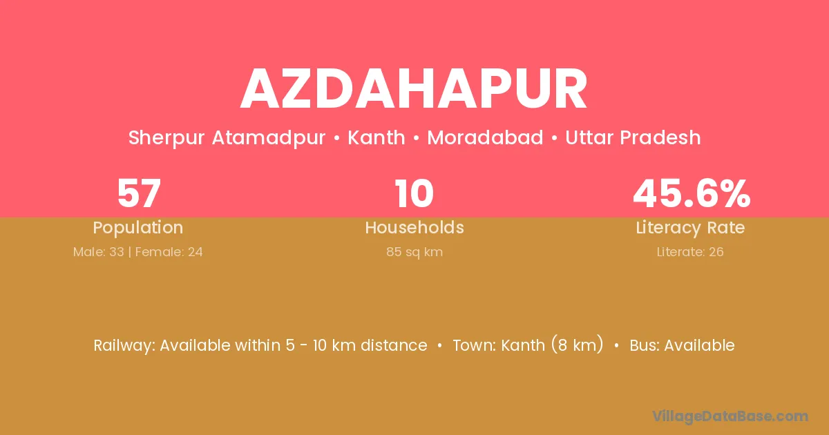 Azdahapur village has a total population of 57 people, of which 33 are males and 24 are females.