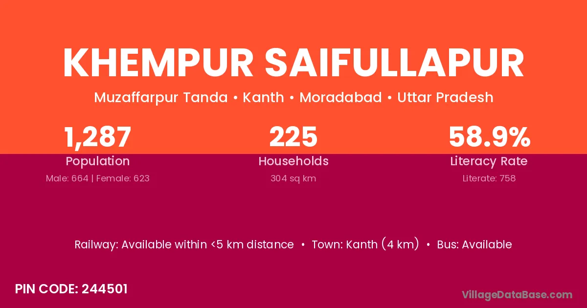 Kanth (4 km) is the nearest town to Khempur Saifullapur village for major economic activities and is located approximately 4 km away.