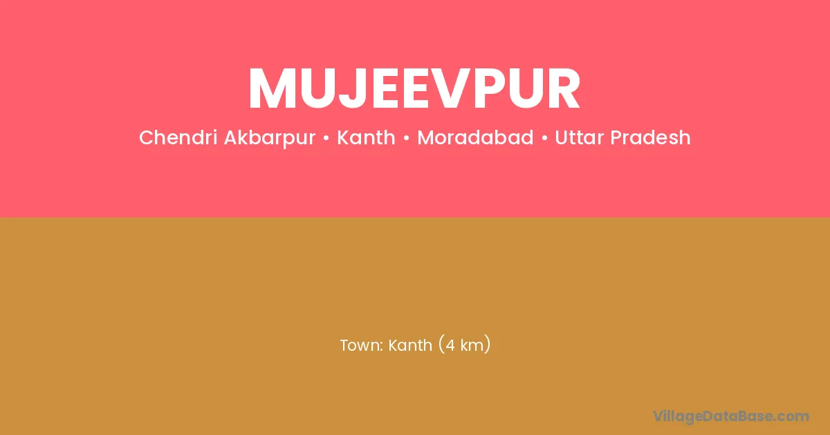 Kanth (4 km) is the nearest town to Mujeevpur village for major economic activities and is located approximately 4 km away.