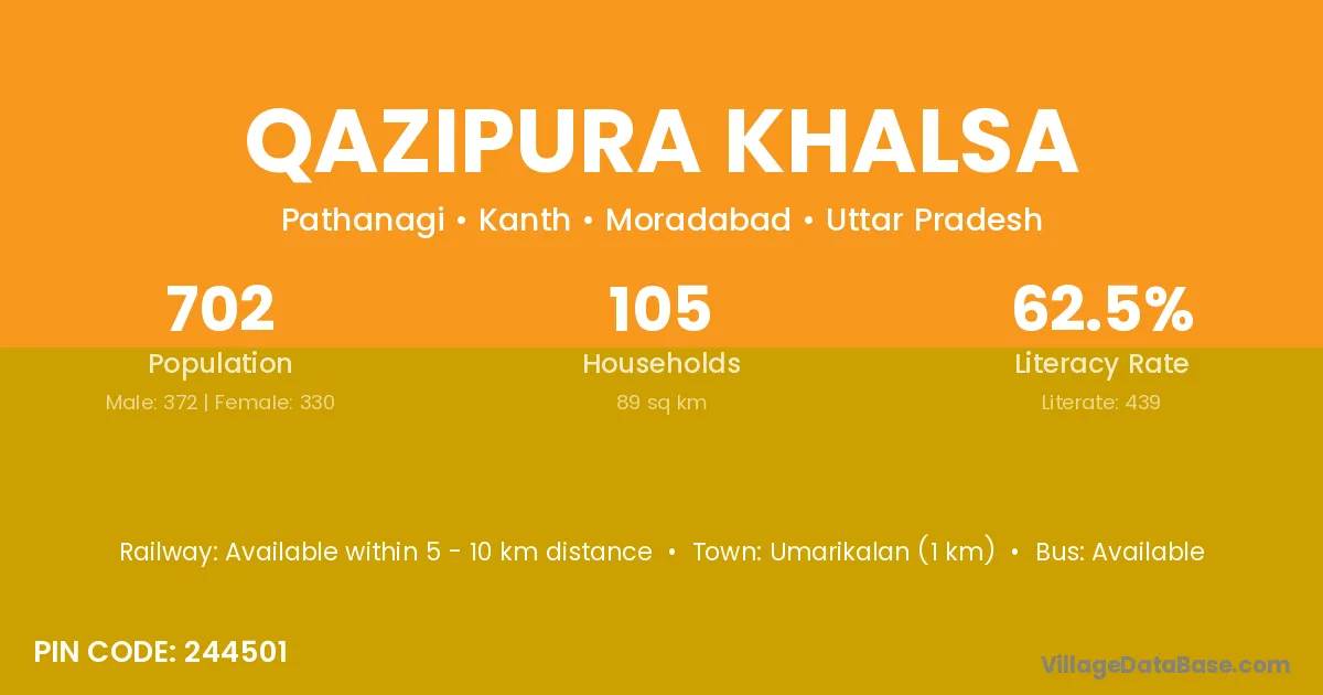 According to Census 2011 information, the village code of Qazipura Khalsa village is 244501.