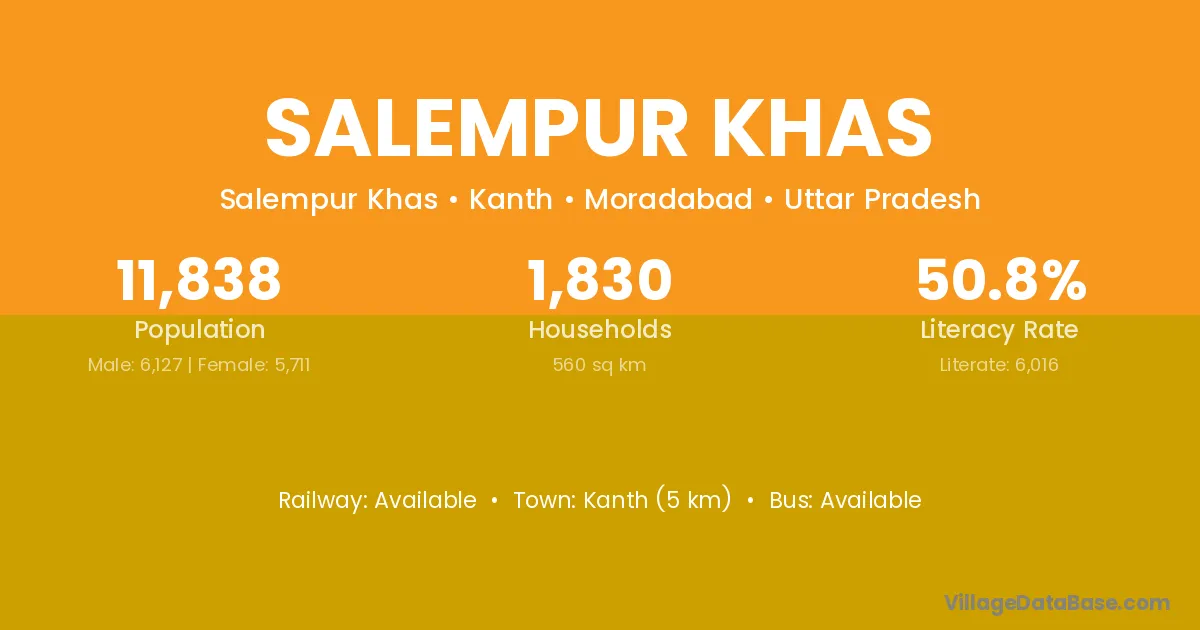 Kanth (5 km) is the nearest town to Salempur Khas village for major economic activities and is located approximately 5 km away.