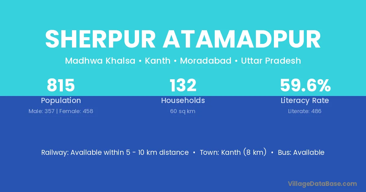 Kanth (8 km) is the nearest town to Sherpur Atamadpur village for major economic activities and is located approximately 8 km away.