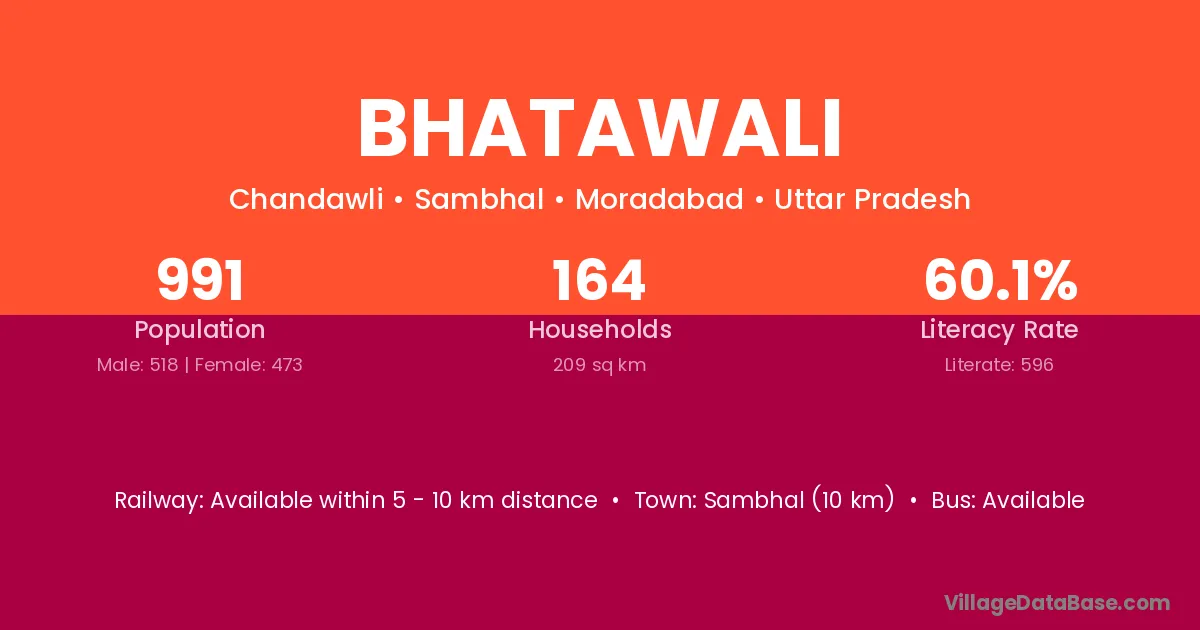 Sambhal (10 km) is the nearest town to Bhatawali village for major economic activities and is located approximately 10 km away.