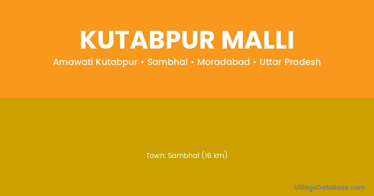 Sambhal (16 km) is the nearest town to Kutabpur Malli village for major economic activities and is located approximately 16 km away.