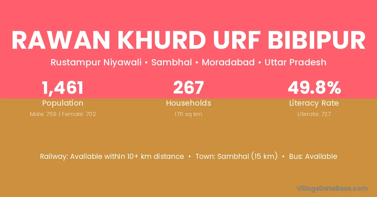 Rawan Khurd Urf Bibipur village has a total population of 1,461 people, of which 759 are males and 702 are females.