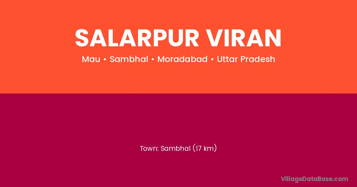 Sambhal (17 km) is the nearest town to Salarpur Viran village for major economic activities and is located approximately 17 km away.