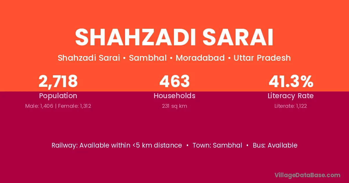 Sambhal is the nearest town to Shahzadi Sarai village for major economic activities