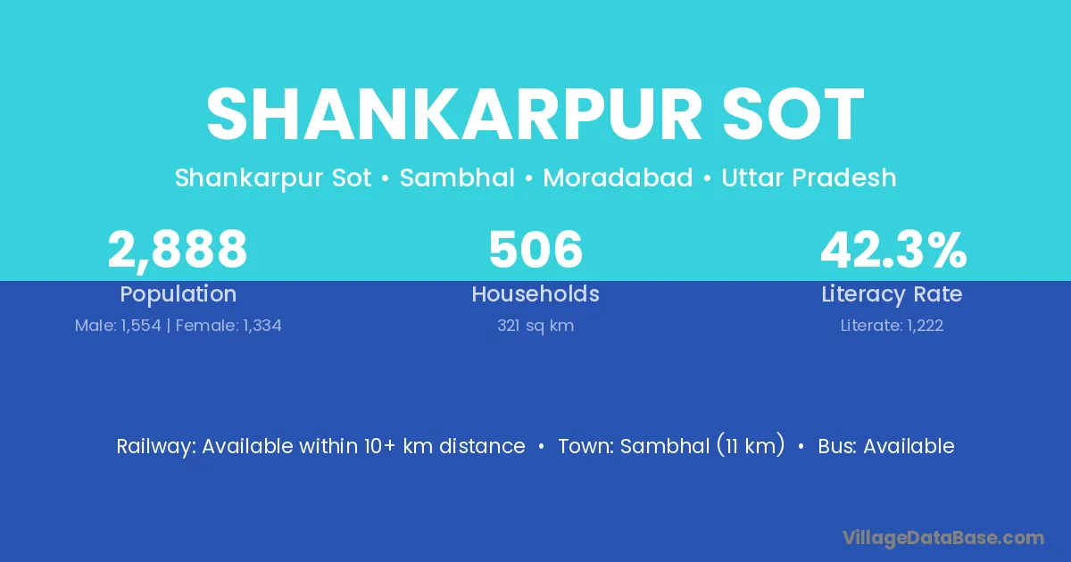 Sambhal (11 km) is the nearest town to Shankarpur Sot village for major economic activities and is located approximately 11 km away.