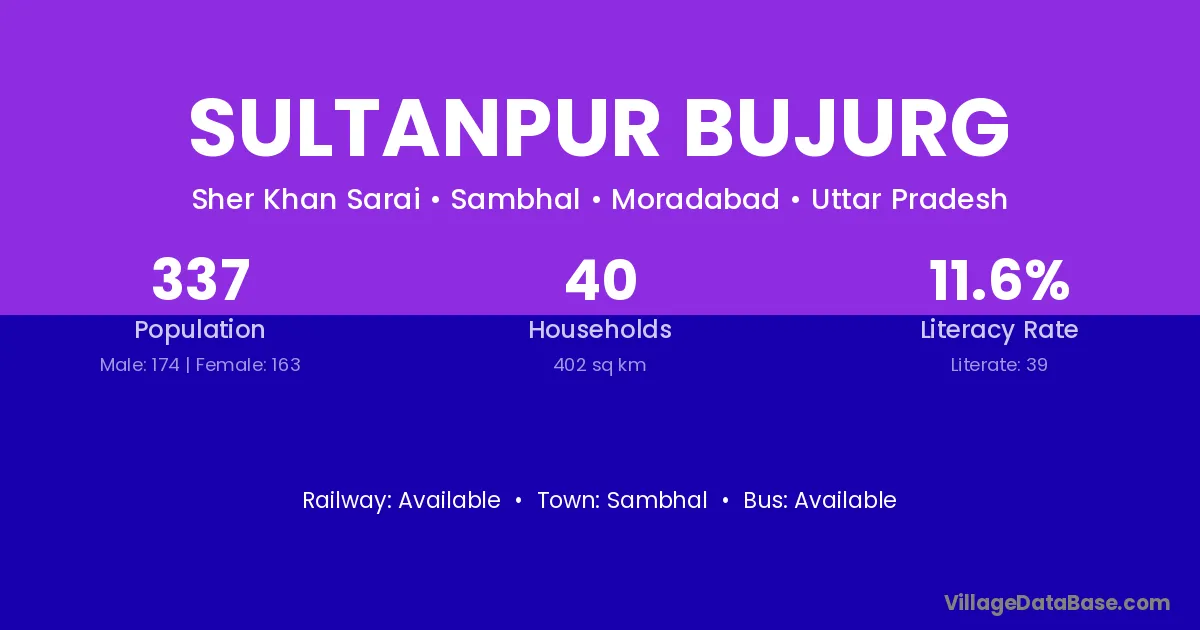 Sultanpur Bujurg village has a total population of 337 people, of which 174 are males and 163 are females.