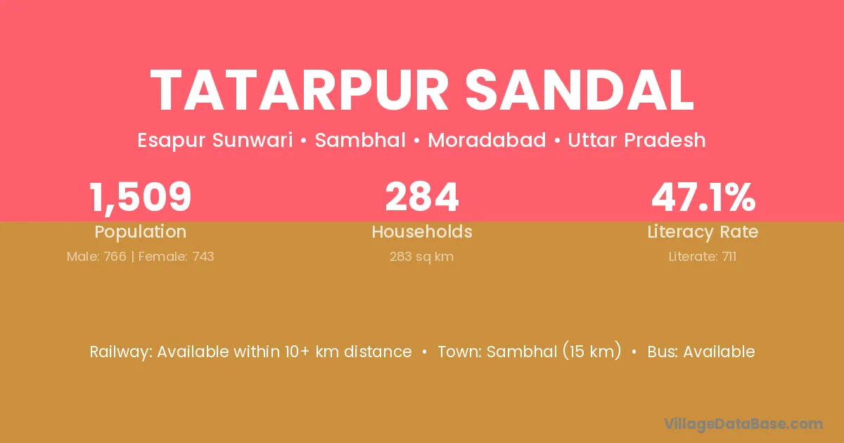 Sambhal (15 km) is the nearest town to Tatarpur Sandal village for major economic activities and is located approximately 15 km away.