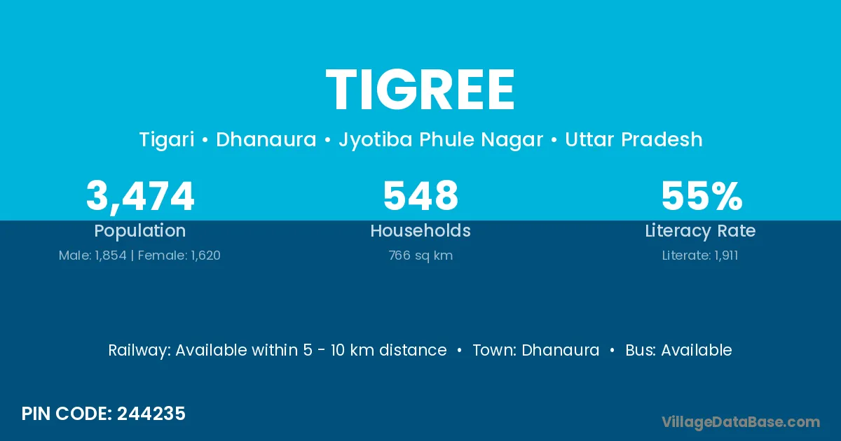 Sambhal (9 km) is the nearest town to Tigree village for major economic activities and is located approximately 9 km away.