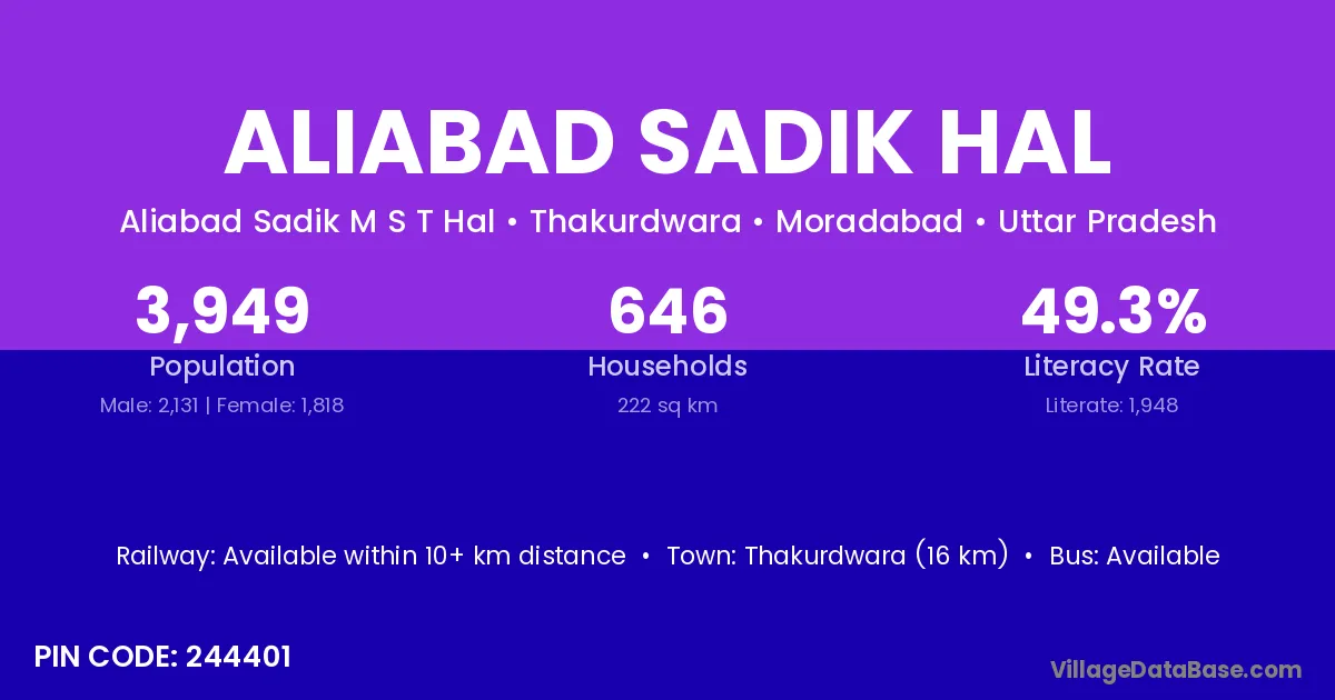 Aliabad Sadik Hal village is located in the Thakurdwara Tehsil of the Moradabad district in Uttar Pradesh .