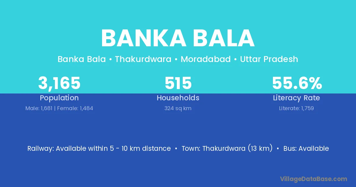Thakurdwara (13 km) is the nearest town to Banka Bala village for major economic activities and is located approximately 13 km away.