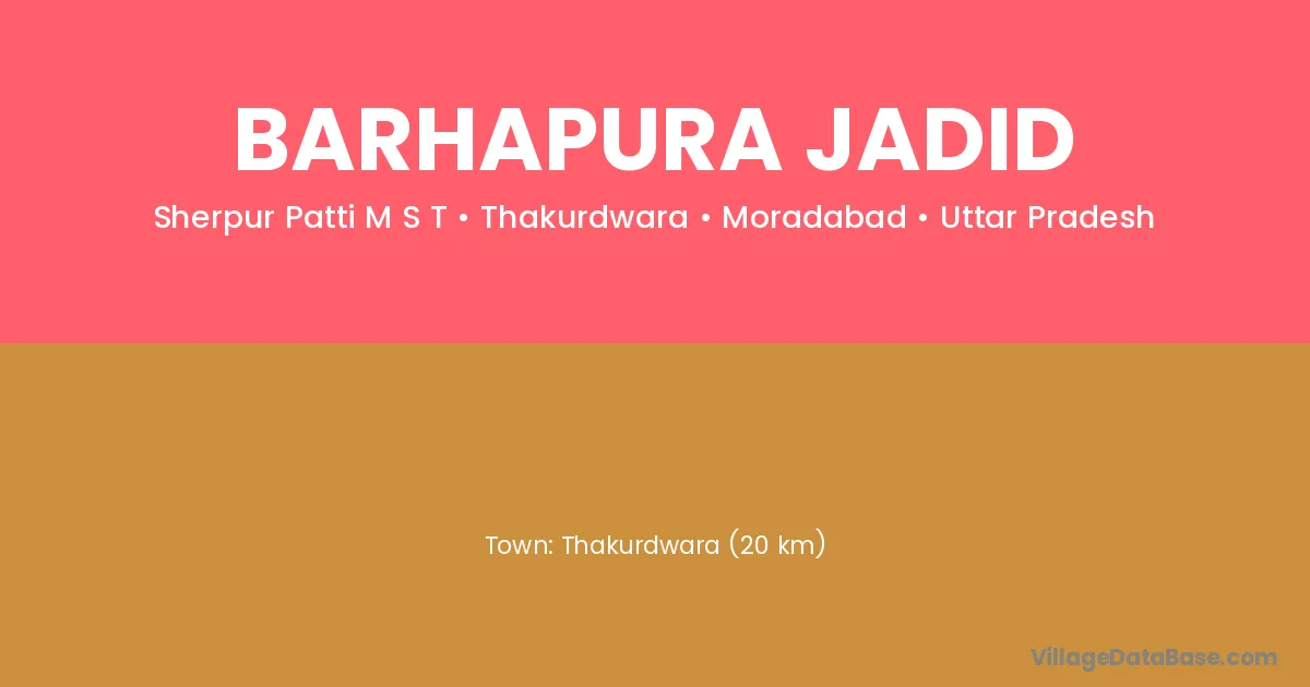 Thakurdwara (20 km) is the nearest town to Barhapura Jadid village for major economic activities and is located approximately 20 km away.