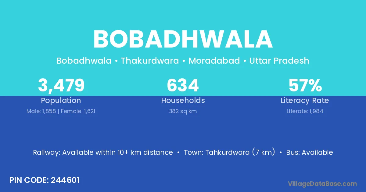 Tahkurdwara (7 km) is the nearest town to Bobadhwala village for major economic activities and is located approximately 7 km away.