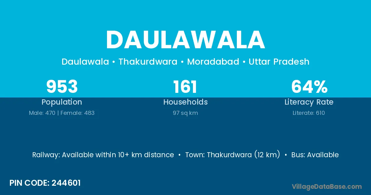 Thakurdwara (12 km) is the nearest town to Daulawala village for major economic activities and is located approximately 12 km away.