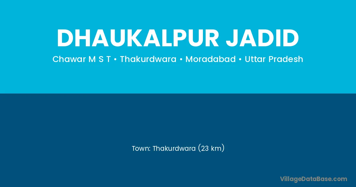 Thakurdwara (23 km) is the nearest town to Dhaukalpur Jadid village for major economic activities and is located approximately 23 km away.