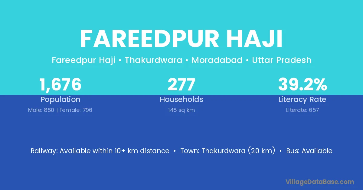 Thakurdwara (20 km) is the nearest town to Fareedpur Haji village for major economic activities and is located approximately 20 km away.