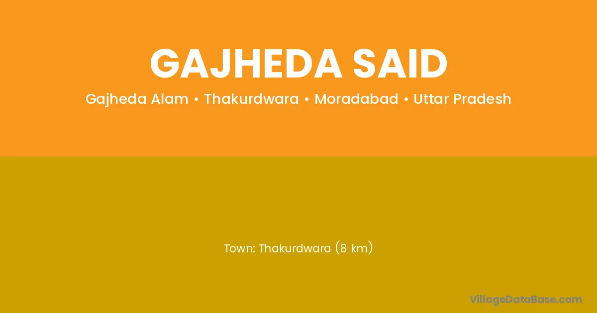 Thakurdwara (8 km) is the nearest town to Gajheda Said village for major economic activities and is located approximately 8 km away.