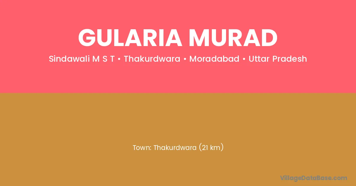 Thakurdwara (21 km) is the nearest town to Gularia Murad village for major economic activities and is located approximately 21 km away.