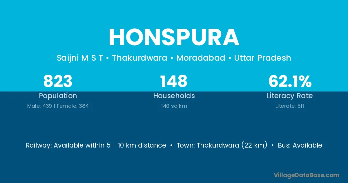 Thakurdwara (22 km) is the nearest town to Honspura village for major economic activities and is located approximately 22 km away.