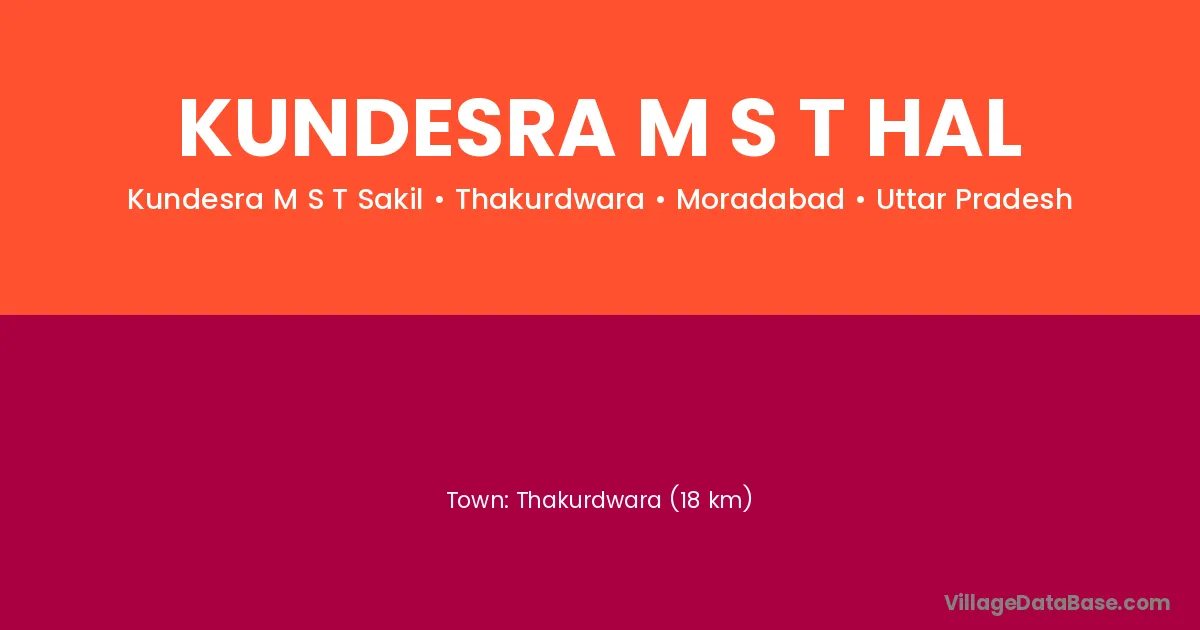 Thakurdwara (18 km) is the nearest town to Kundesra M S T Hal village for major economic activities and is located approximately 18 km away.