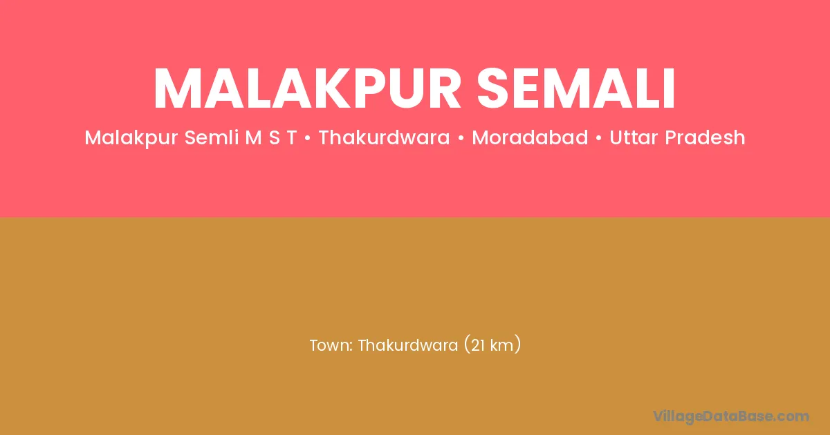 Thakurdwara (21 km) is the nearest town to Malakpur Semali village for major economic activities and is located approximately 21 km away.